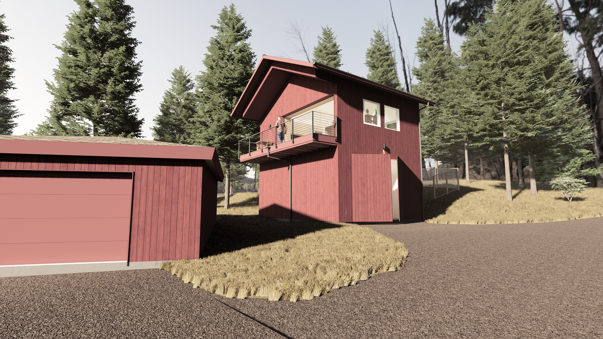 This project extends an existing Orcas Island residence with a simple program: a garage below and a flexible studio above. The addition sits on a rare flat portion of the otherwise rocky site, replacing a woodshed and making space for the owners’ travel trailer while creating a light-filled room for guests.